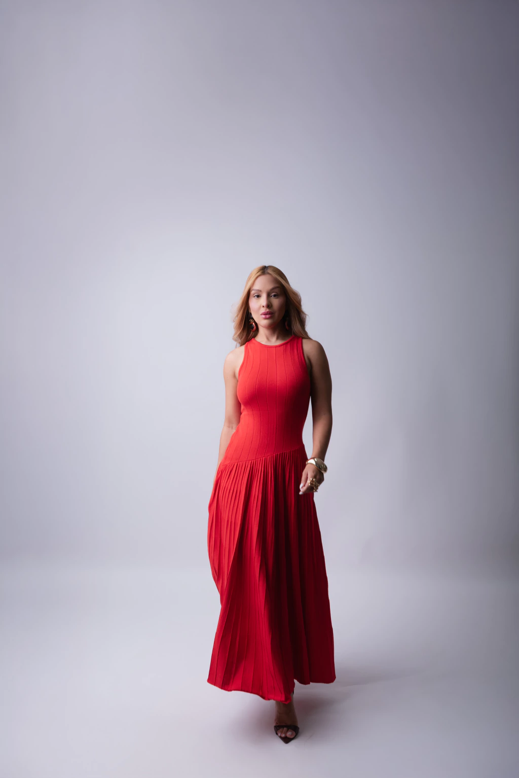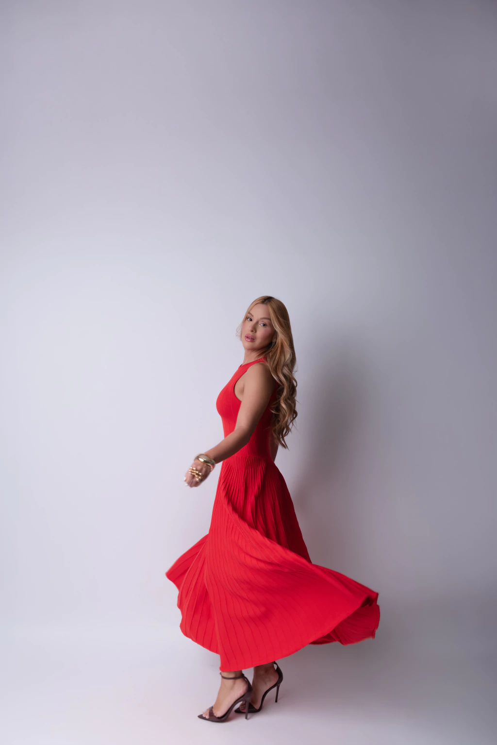 A Saia VT Vermelho Plissado Bem Rodado Comprimento Midi é a escolha perfeita para quem deseja unir elegância e movimento em um só look. Seu tecido plissado confere um caimento leve e sofisticado, enquanto o comprimento midi proporciona um toque clássico e moderno ao mesmo tempo.
