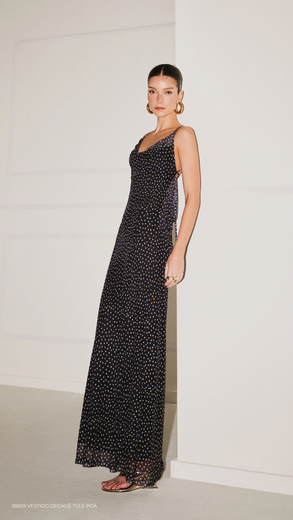 Aposte no Vestido Degage Tule Poá para um look cheio de personalidade e feminilidade, ideal para quem busca elegância sem abrir mão do conforto. Um verdadeiro must-have para quem quer brilhar com sutileza e sofisticação em qualquer ocasião!